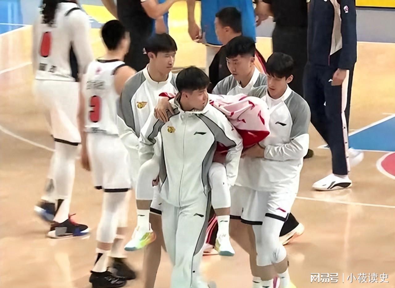 比赛的转折点发生在第二节中段。广东队试图通过提速来挽回劣势,徐杰作为球队的进攻大脑,在一次突破分球的过程中与北京队防守球员发生了剧烈的身体碰撞。慢镜头回放显示,徐杰在落地时脚踝被压,随即痛苦倒地,长时间无法起身。现场队医进场后进行了紧急处理,随后徐杰被队友背出场。徐杰的受伤离场直接导致了广东队攻防体系的崩盘。作为球队唯二的持球强点,他的缺阵让广东队的后场轮转立刻捉襟见肘,胡明轩不得不承担起全部的组织重任,但这恰恰落入了北京队的防守陷阱。