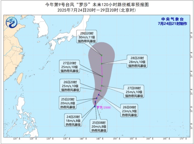 台风“罗莎”位于距离关岛塞班西偏北方向约260公里的海上,强度为热带风暴,预计其将以每小时10公里左右的速度向偏北方向移动,强度逐渐加强。