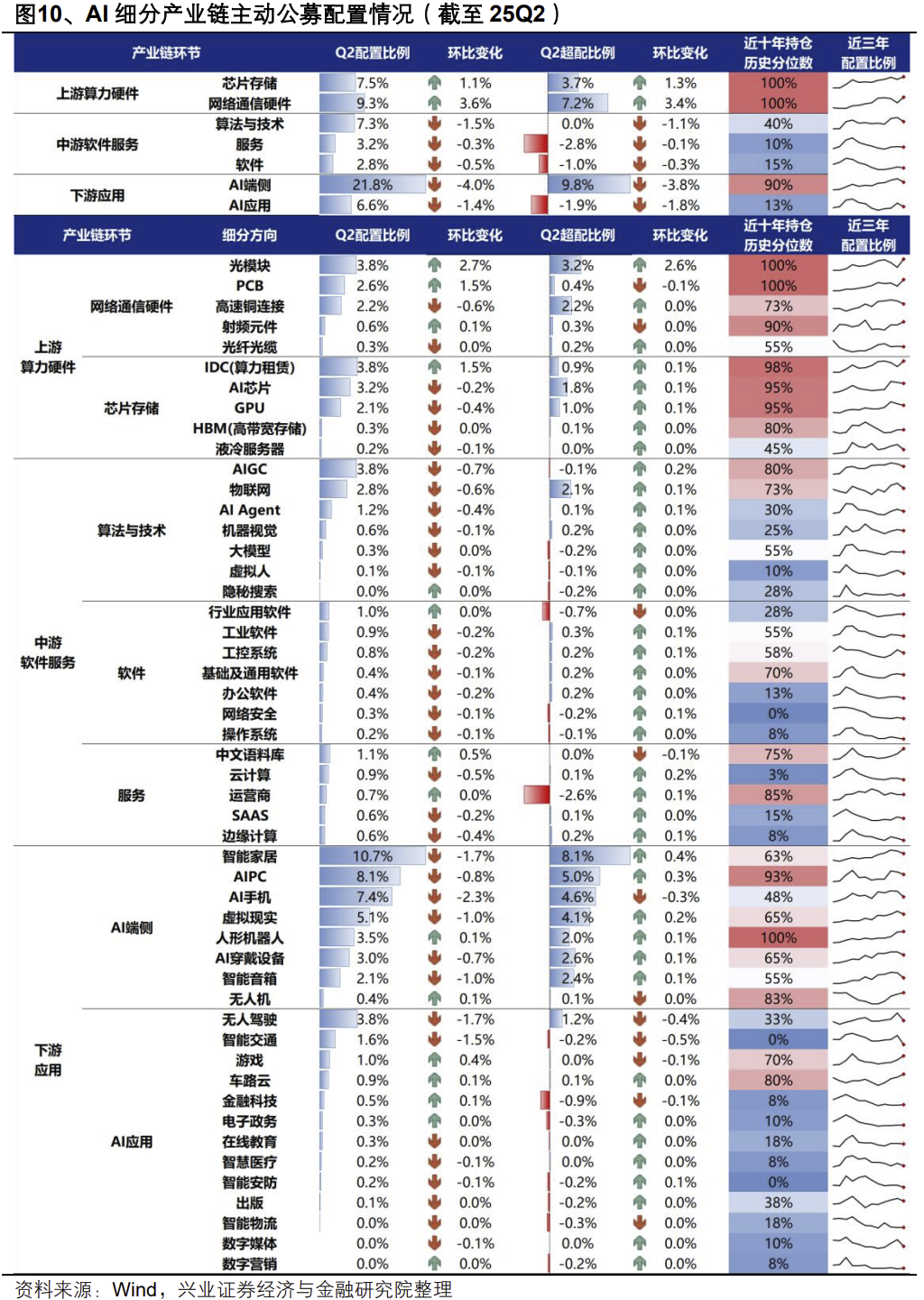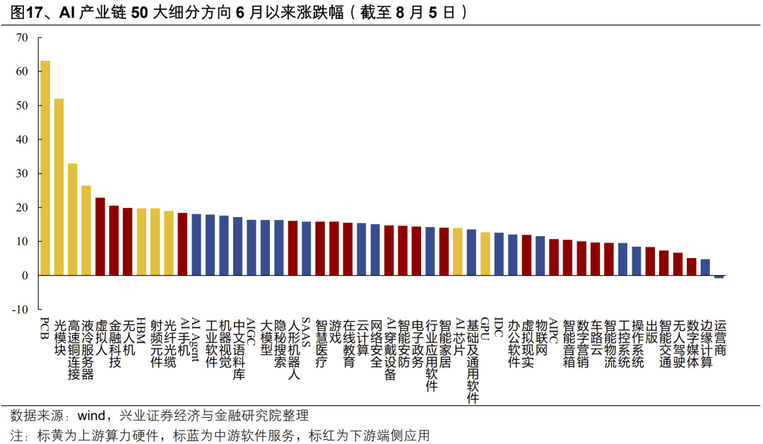 应用方面,近期Kimi K2、阿里通义Qwen3等新模型的发布表明国内大模型仍在快速迭代,而H20芯片放开、大厂重新加大对AI的投入后,国内AI应用的进展也有望进一步提速。此外,三季度中下游具备多重潜在催化,包括GPT-5、DeepSeek R2等大模型的进展,Meta在9月即将发布的AR眼镜等,都有望为AI应用和端侧带来新的催化。